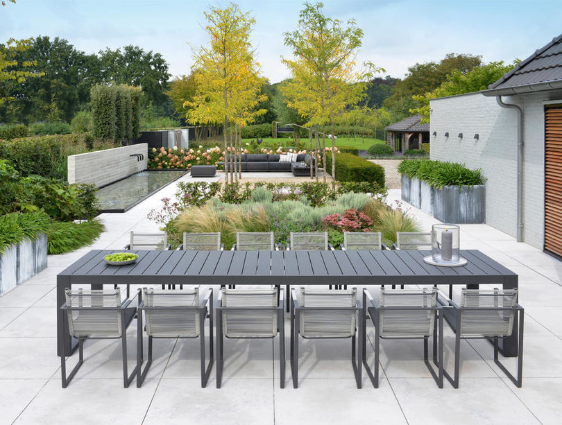 De Andria serie van Borek is zeer strak vormgegeven, is licht van gewicht en heeft een warme natuurlijke uitstraling. Een gepoedercoat aluminium frame in de kleur antraciet in combinatie met Ardenza Rope, in de kleuren ijzergrijs of antraciet. De Rope is vervaardigd uit een thermoplastische synthetische draad. Zowel de kern van de draad als de draad zelf zijn door en door gekleurd. Dit materiaal is waterafstotend, uv-bestendig en schimmelwerend. Zitkussen € 99,00