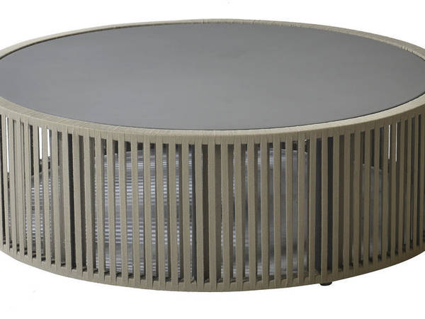 Het frame van de tafels zijn gemaakt van gepoedercoat aluminium in de kleur antraciet. Het frame is bespannen met een weerbestendige en enorm sterk "Campania rope" in de kleur taupe. De lage tafel die tevens te gebruiken is als poef is exclusief het kussen. De kleur van de kussens is sooty zwart en kost € 450,00