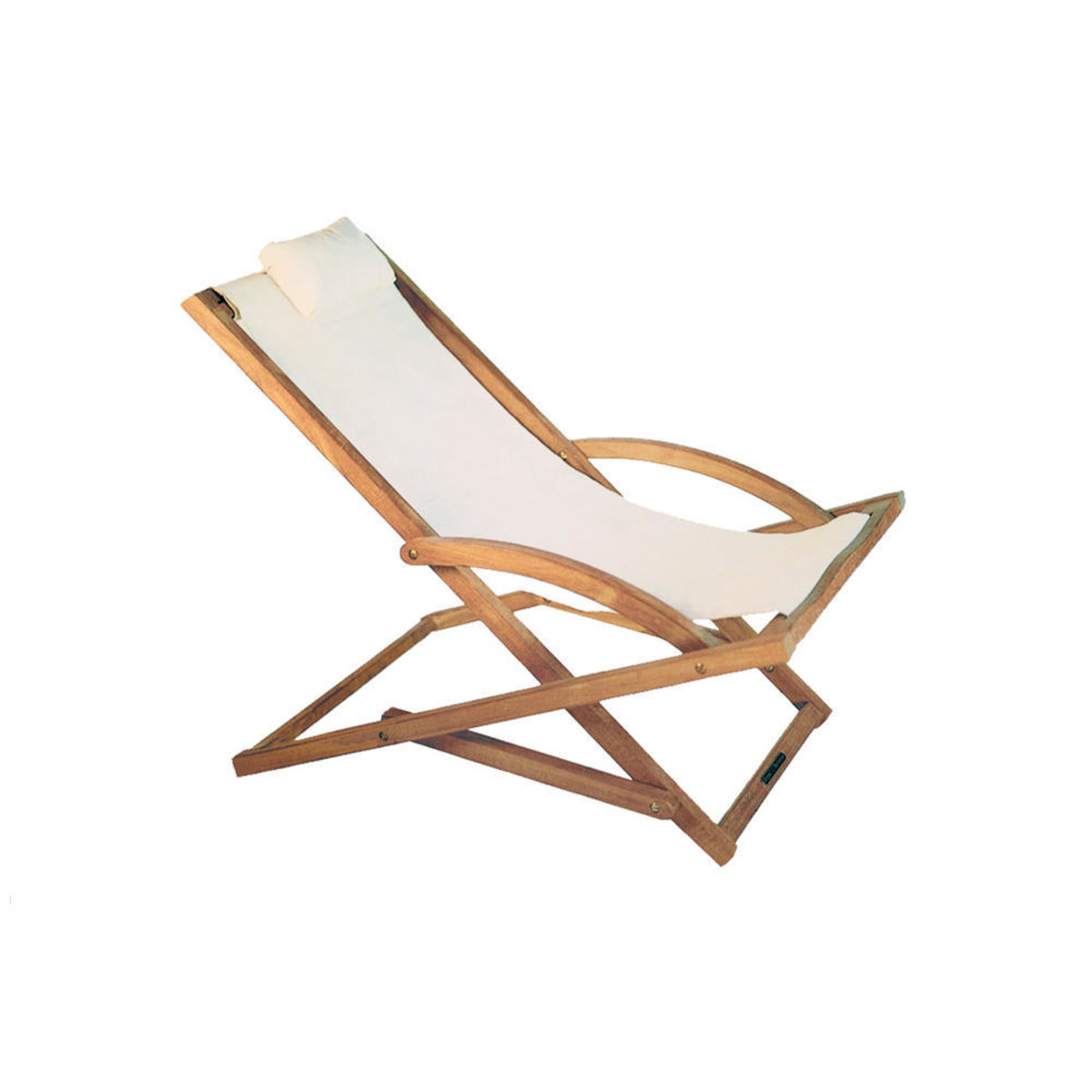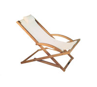 De zitting is van Batyline® en leverbaar in 6 kleuren. Het frame is van teakhout.