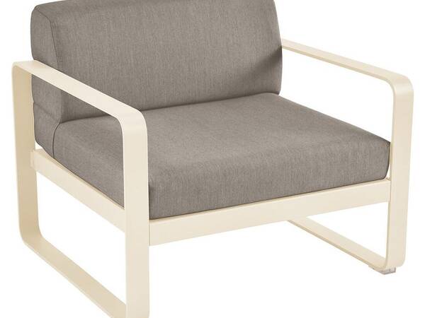 De stoel is gemaakt van gepoedercoat aluminium. De gebroken wit all-weather kussens hebben een hoes van Sunbrella® stof.