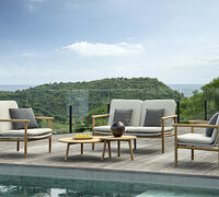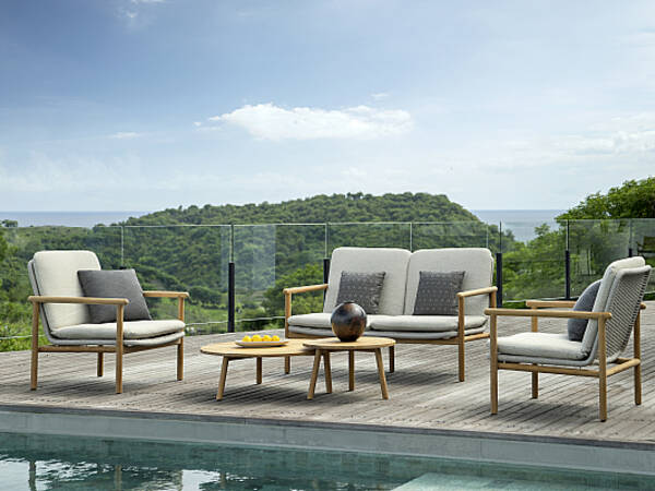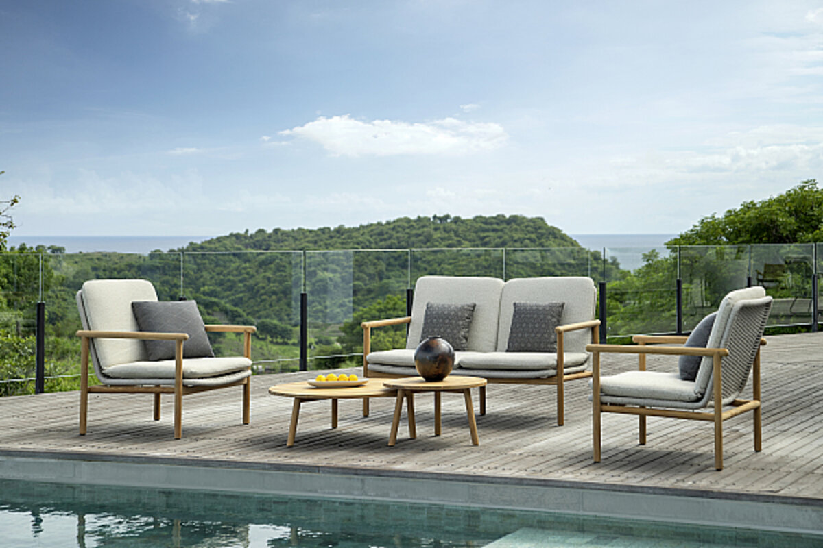 De collectie is vervaardigd van hoogwaardig A-klasse teakhout en kenmerkt zich door geraffineerde geweven details, elegante keramische accenten en sneldrogende Sunbrella-kussens die langdurig comfort en stijl bieden in tuinen, terrassen en horecagelegenheden.
