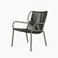 De stoel is verkrijbaar in de kleurencombinatie mosgroen frame met donkergroen rope of taupe frame met zand rope.