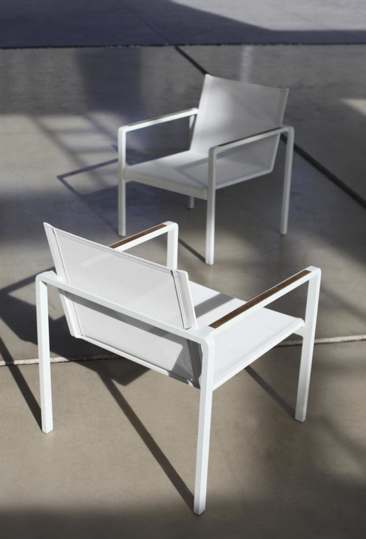 De zitting is van Batyline, het frame is van gepoedercoat aluminium. De stoel is verkrijgbaar in vier kleuren.