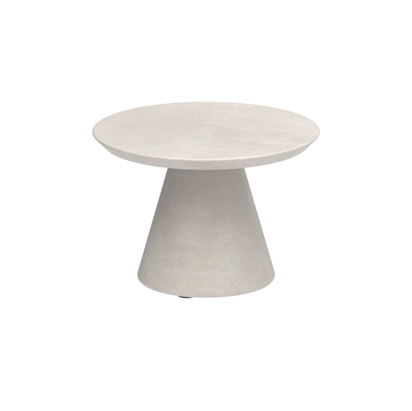 De conische poot van de tafel is gemaakt van fraai afgerwkt beton. De poot is te vullen met zand voor extra stabiliteit.