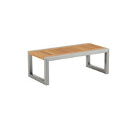 Het blad is van teakhout of, het frame is van geborsteld of gelectropolijst roestvast staal of van gepoedercoat rvs.