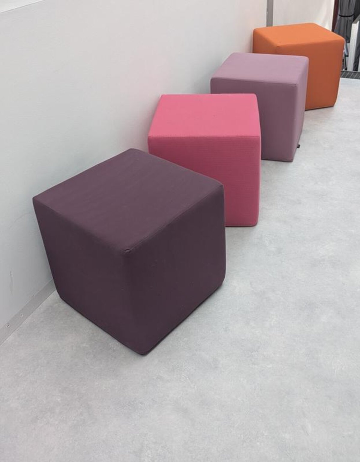 Deze vrolijke kubussen zijn te gebruiken als zitplaats bij een eettafel, als voetenbank en als bijzettafel.