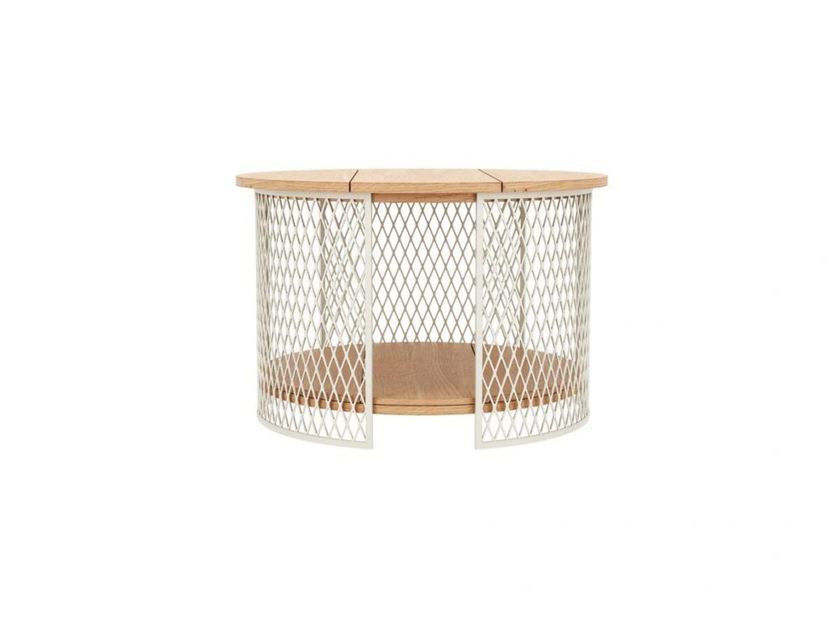De ISABELLA coffee and side table combineert massief teakhout met een modern gepoedercoat roestvrijstalen frame in de kleur Linen. Deze ronde bijzet- en salontafel vormen een stijlvolle aanvulling op de Isabella collectie en brengen balans tussen warmte, verfijning en eigentijdse vormgeving.