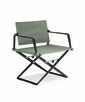De opvouwbare loungestoel is gemaakt van aluminium en weerbestendige bekleding.