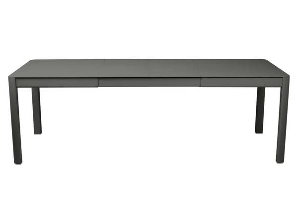 Deze aluminium tafel is uitschuifbaar van 149 cm. naar 234 cm. lang. de diepte is telkens 100 cm. en de hoogte 74 cm. gewicht 41,2 kg.