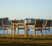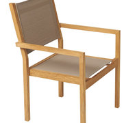 De zitting is van Textileen® en verkrijgbaar in drie kleuren. het frame is van teakhout met rvs beslag.