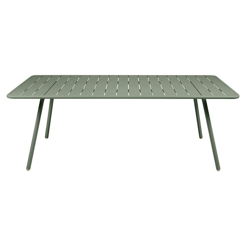 De vier tafelpoten en het blad zijn van gepoedercoat aluminium, het blad is opgebouwd uit latten.
