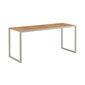 Het tafelblad is van teakhout, het frame is van geborsteld, geëlectropolijst of gepoedercoat roestvast staal.