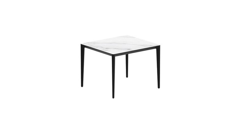 Het blad kan uitgevoerd worden in teak of keramiek. Het keramiek is leverbaar in de kleuren taupe grijs, wit marmer, cement, vulkaan zwart, wit, zwart, parel grijs of travertine.