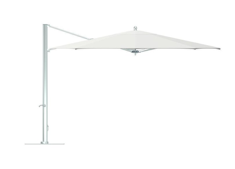 Deze zeer luxe zijarm parasol is zeer windbestendig. Openen en sluiten gaat heel licht en eenvoudig d.m.v. een draaihendel.