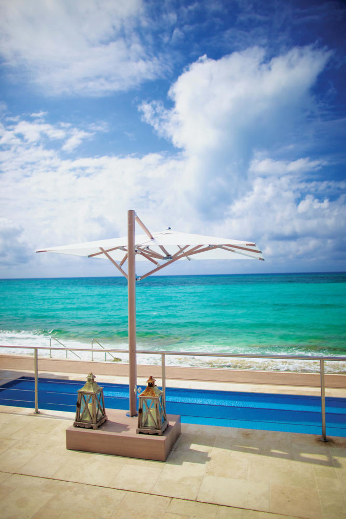 De mast en de baleinen zijn van aluminium en hebben een teak finish laklaag, verkrijgbaar in de kleuren natural teak, teak grijs, java of wit/grijs. Het doek is gemaakt van Sunbrella Marine kwaliteit en verkrijgbaar in vele kleuren.